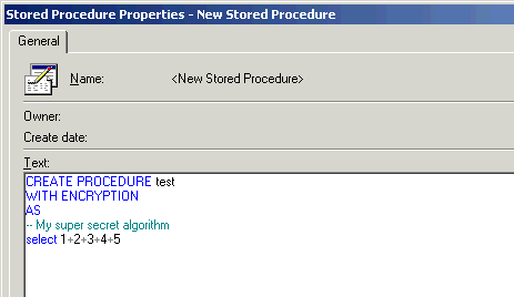verschlüsselte Stored Procedures und Trigger nicht länger als 4000 Zeichen sein.